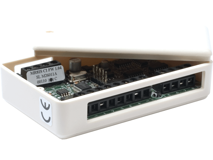 Card with 2 relays for connection to the open collector outputs on the control unit.