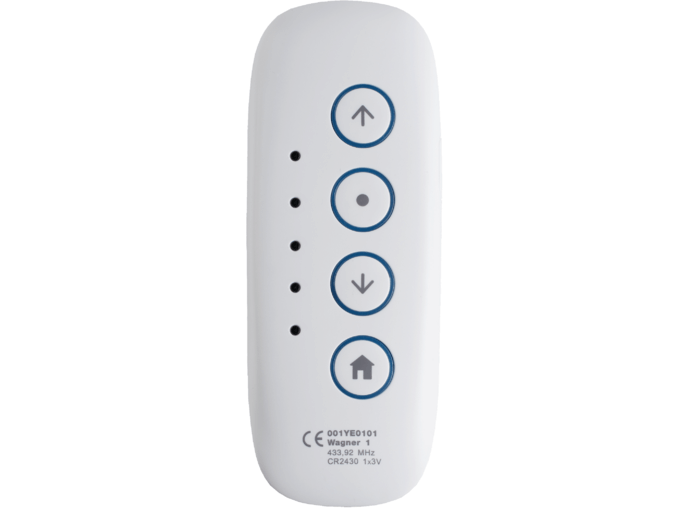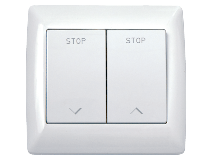 Wall-mounted 433.92 MHz transmitter, 15 channels, white.