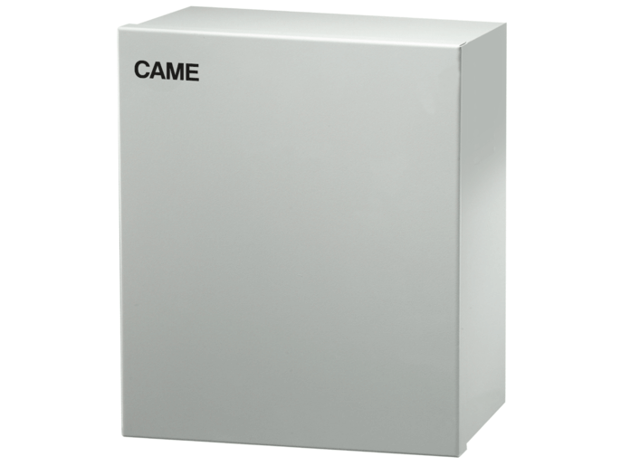Auxiliary power supply supervised for burglar alarm systems in metal container. 230V Vac power supply voltage; 13.8Vdc output voltage. Output current 1.5 A. Short-circuit and overload protection. When connected on the system bus, it communicates its operating status to the control unit, analysing all operating conditions. The container can lodge a 7Ah battery (BB072) and two among the following types of modules: PX8IR, PX8OR, PXABR. Possibility of use even without the connection to the system bus as a standard power supply station. No. 2 O.C. outputs for local alerts of power-supply unit and network malfunctions. Operating temperature -10/+40°C. Dimensions 405x295x90 mm. Regulatory compliance EN 50131-6 Grade 2.
