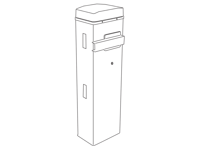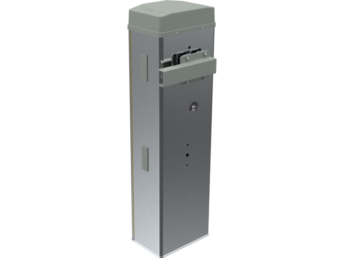 GLT40ACS - Barrière automatique avec motoréducteur irréversible 24 VDC à encodeur ; armoire personnalisable en acier galvanisé et peint RAL, prééquipée pour accessoires. Ressort d’équilibrage inclus.
