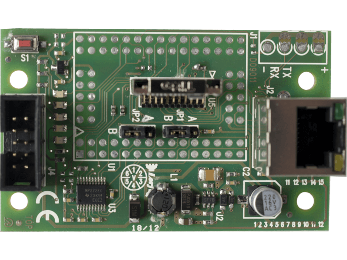 PSTN-module. Hiermee kunnen de gebeurtenissen van de centrale unit naar 8 telefoonnummers worden verzonden. Digitale overdracht met Contact ID-protocol. Maakt, gecombineerd met de spraak-kaart, het versturen van spraakberichten en besturing op afstand met spraaksturing mogelijk. Stroomopname 20 mA. Afmetingen 74 x 74 x 32 mm. Conform de norm EN 50131-3 graad 2, milieuklasse II.