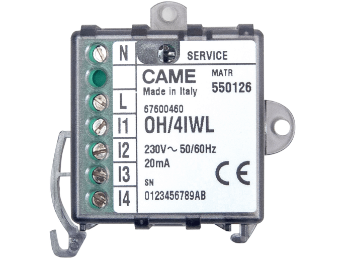 Beschikt over 4 digitale ingangen 230V AC voor de aansluiting van bedieningsinrichtingen (knoppen). Hiermee kunnen 4 afzonderlijke instructies (bijv. lichten) of 2 dubbele instructies (bijv. rolluikmotor) worden verstuurd. Kan dankzij de behuizing in een verdeelkast op DIN-rail of onderin een inbouwdoos geïnstalleerd worden.