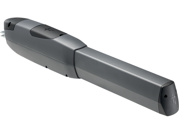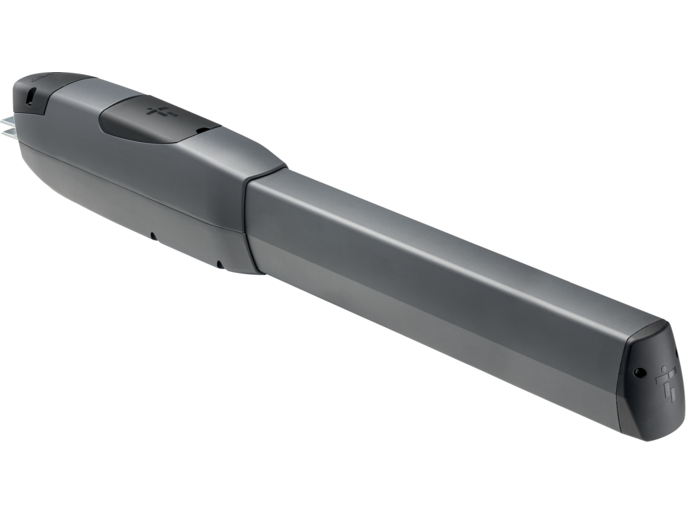 24 V irreversibler Getriebemotor mit Encoder für Drehtore mit Flügel bis 5 m oder 1000 kg Gewicht. Ausgestattet mit mechanischem Anschlag für Öffnung und Schließung. Farbe Grau RAL7024. Schnellversion bis zu 19 s/90°.
