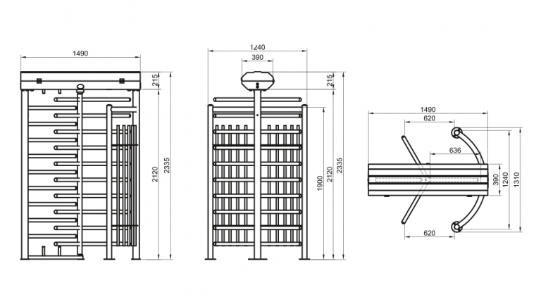 Elektromechanisches Drehkreuz mit 3 Sektionen 120°