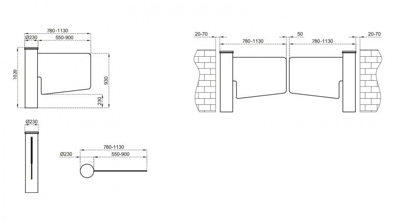 Flügel aus 10 mm Sicherheitsglas, Flügellänge 550 mm