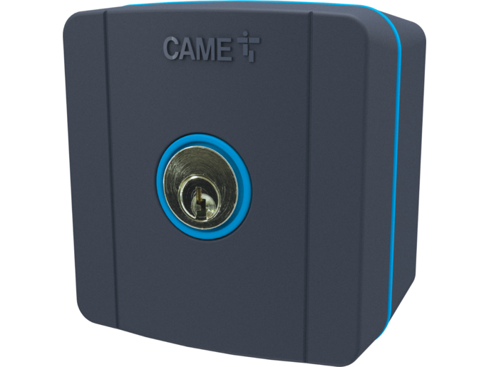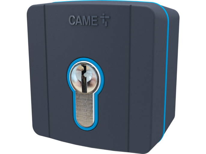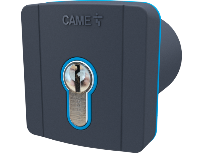 SELC1FDG - Surface-mounted key-switch selector with blue backlight and cylinder lock. RAL7024 Gray color.