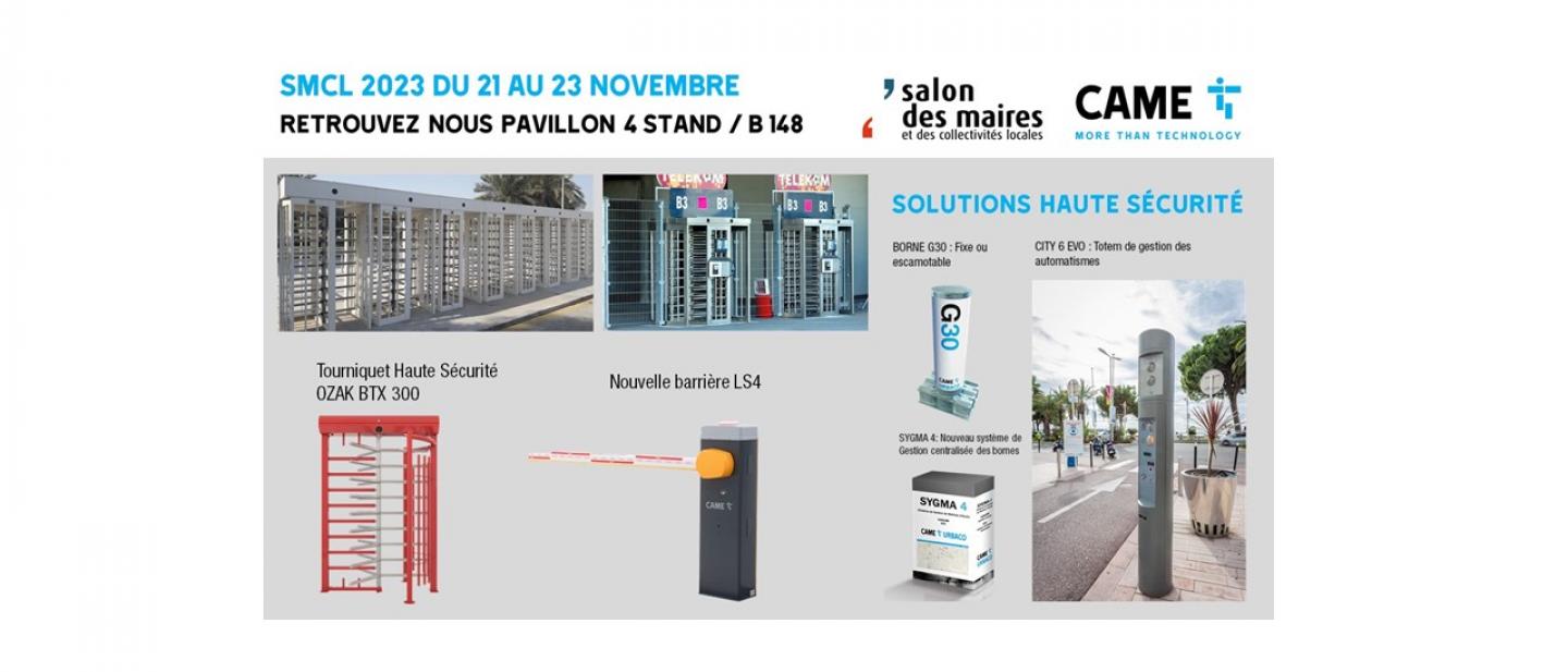 Le Salon des Maires est l’événement annuel à ne pas manquer : rendez-vous Pavillon 4 Stand B148 pour le Salon des Maires et Pavillon 6 Stand A 20 où les équipes CAME France et CAME seront présentes pour promouvoir les nouveautés de la marque au service de la sécurité des villes et de l’efficience des accès.