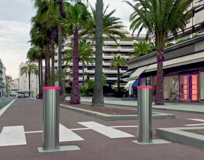 La Croisette-Serbes est l’une des artères les plus connues de Cannes. C’est une route à fort trafic qui mène à la Croisette et aux attractions balnéaires et qui avait besoin d’une solution pour sécuriser les piétons, les usagers de la route et les commerçants pendant la saison des événements. Les deux points d’accès de la route ont été sécurisés par 6 bornes escamotables ONE 40 EVO capables de résister à l’impact d’un camion de 7,5 tonnes roulant à 64 km / h. Les bornes sont contrôlées par deux tours City 6 EVO équipées d’un système d’interphone avec un lien direct avec le service de la police locale. L’installation de 4 bornes fixes G6 EVO offre un niveau de sécurité supplémentaire pour ces points d’accès.