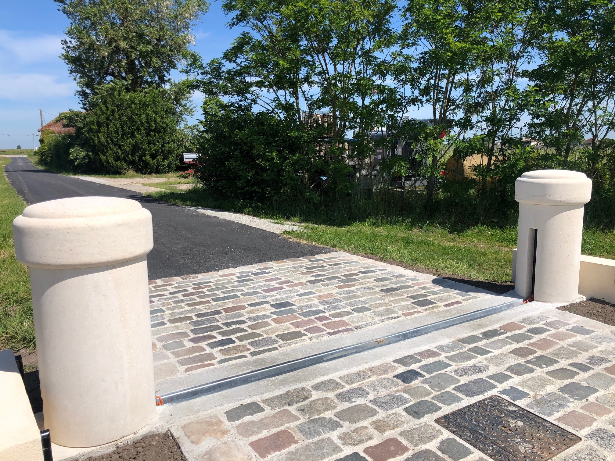 Concernant le premier accès, notre équipe a opté pour l’installation d’une barrière à chaine CATX24 avec un habillage en pierre de taille, se fondant ainsi parfaitement bien dans le cadre naturel du lieu.
