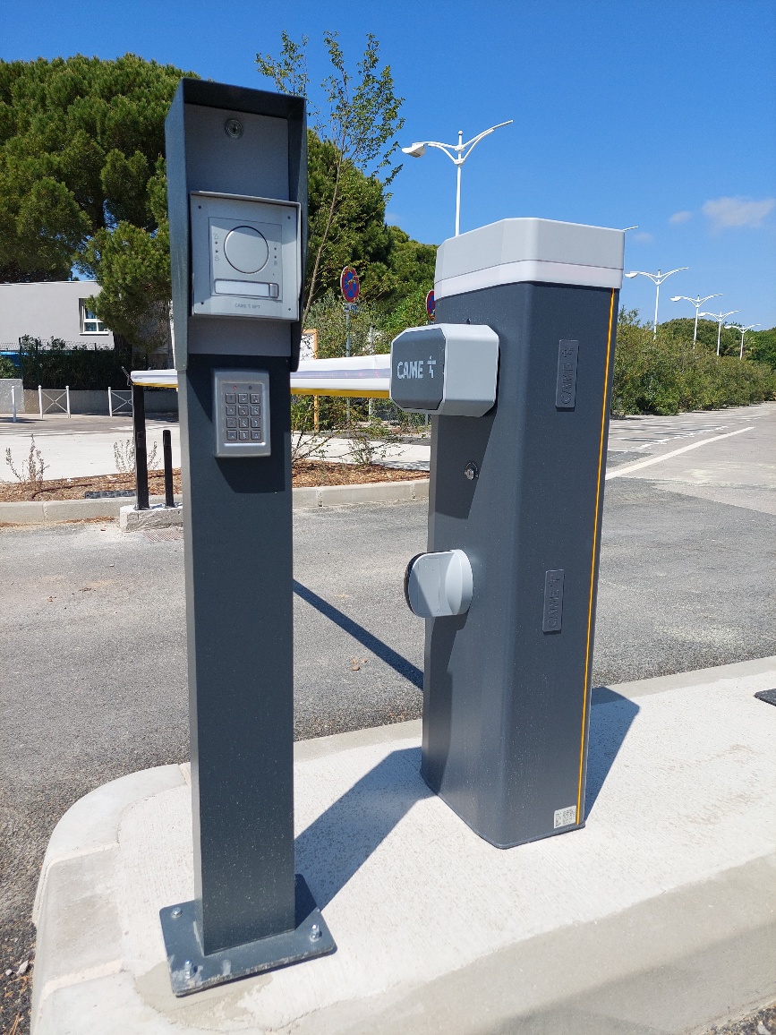 Nous avons opté pour l’installation de barrières GT4, d’interphones MTM GSM afin d’assurer une communication avec l’accueil en cas de problème pour rentrer ou sortir, des caméras lecture de plaques autorisant l’entrée ainsi que des claviers digicodes.
