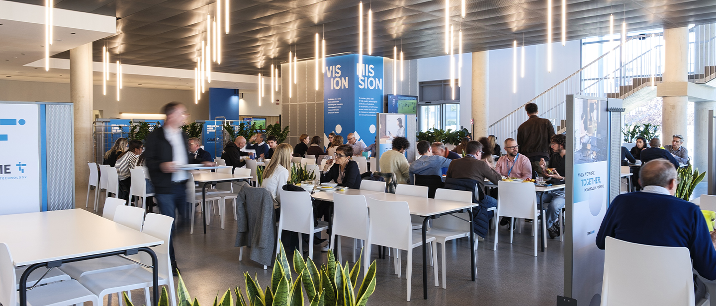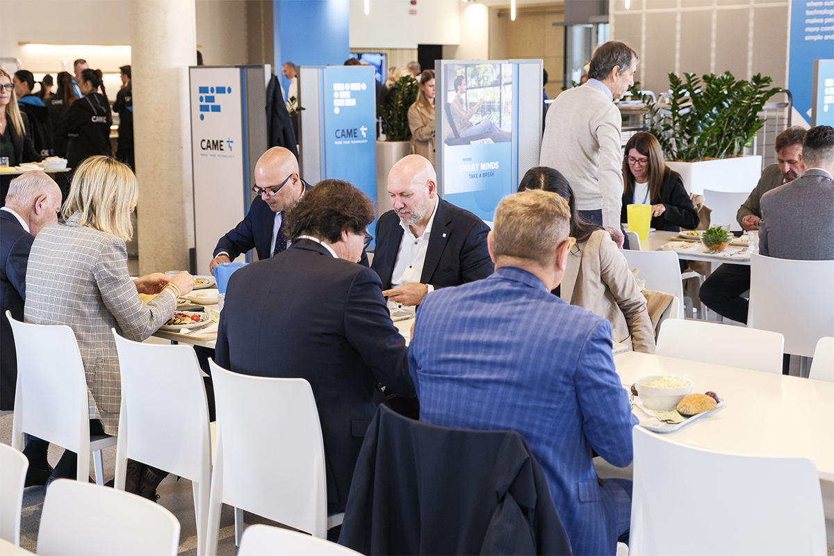 Special attention has been given to nutrition, with a high-quality catering service that goes beyond the traditional concept of a company canteen. Managed by Ristorazione Ottavian, a specialist in corporate catering for more than fifty years, the new facility can serve up to 900 meals per day, offering dishes made with fresh, seasonal ingredients. This model reflects CAME’s vision: combining innovation, sustainability, and care for people, recognising that the quality of work also stems from the daily well-being of those who perform it.