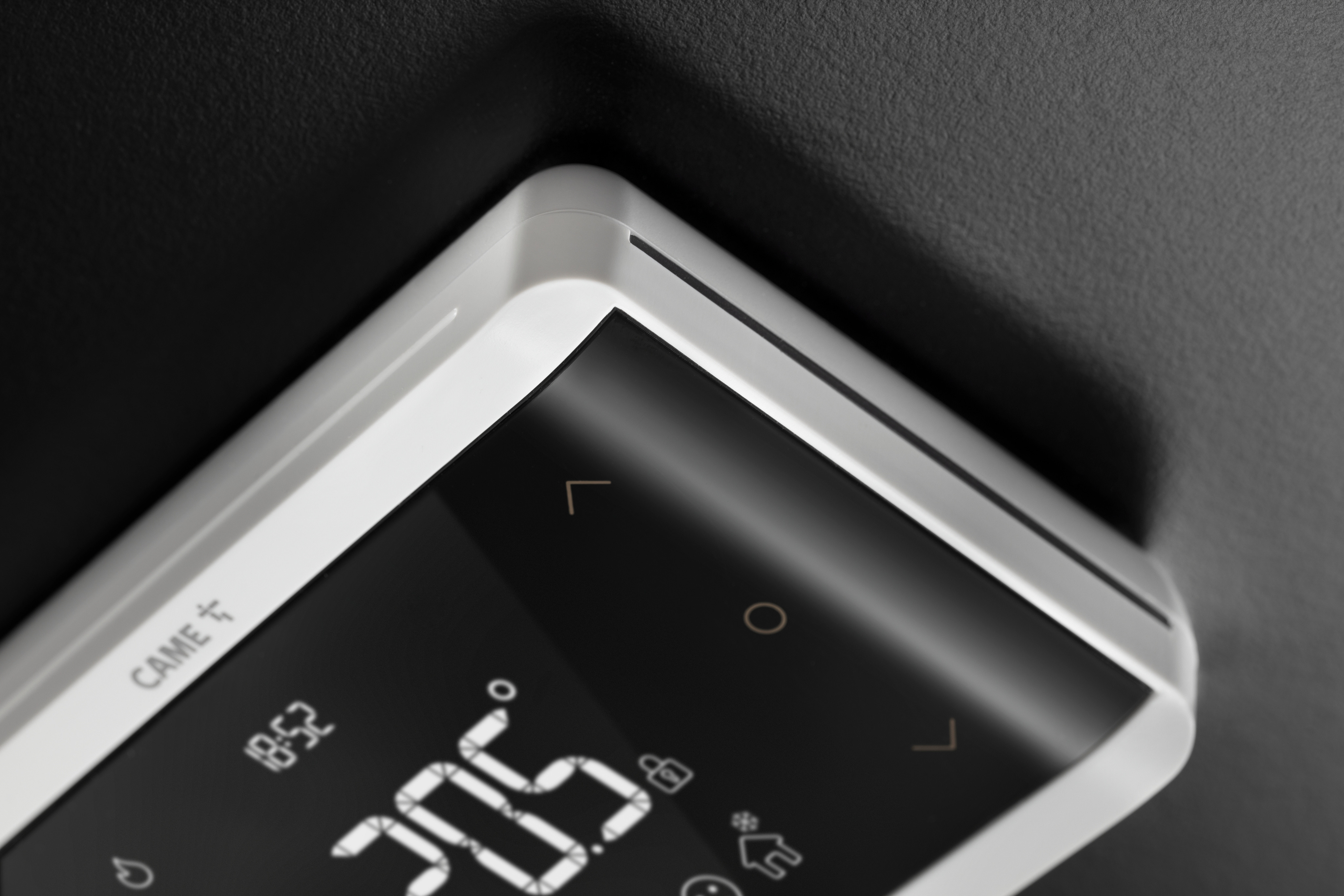 - The TH/650 is a modern thermostat available in both surface-mount and recess-mount versions, with two finish options: black and white. It features an intuitive display, soft-touch buttons, and a Smart Backlight with color-coded LEDs to indicate system status. Additionally, the TH/650 includes a self-learning function that records the user’s preferred temperatures over a week and integrates them into a customized profile, automatically managing daily temperature adjustments.