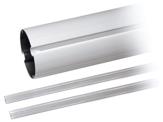Letva eliptičnog presjeka od bijelo lakiranog aluminija, komplet s pokrovnim profilom za žlijeb. Duljina letve: 4 m.