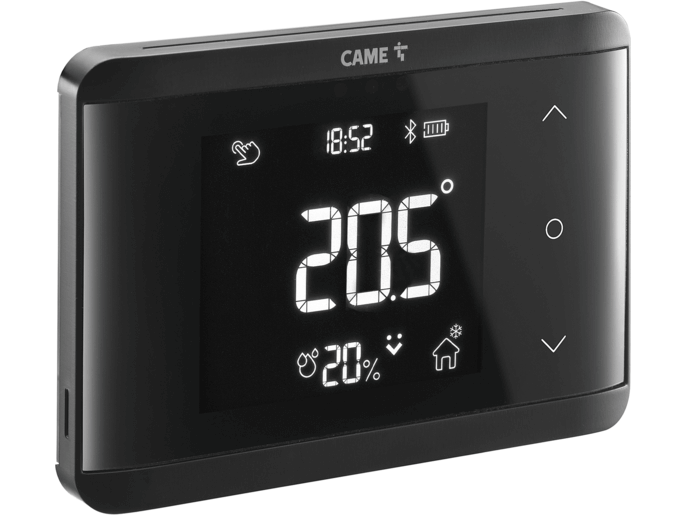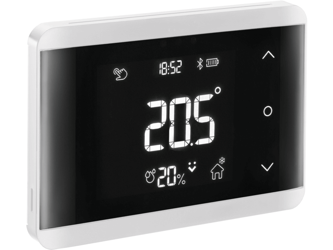 Ugradbeni uređaj modernog i esencijalnog dizajna. Širok zaslon s dobrom čitljivosti i soft touch tipkama. Uklapa se u bilo koji stil uređenja zahvaljujući dvjema raspoloživim završnim obradama te je idealno rješenje za različite vrste sustava grijanja. Kako bi rukovanje krono-termostatom bilo što jednostavnije, na zaslonu postoje samo 3 tipke za odabir načina rada. Sve druge funkcije, primjerice konfiguracija, programiranje i razna podešavanja, dostupne su isključivo preko aplikacije THermo. U područjima u kojima nije dostupna Wi-Fi mreža, Bluetooth veza predstavlja optimalno rješenje za programiranje krono-termostata preko aplikacije na uobičajenom pametnom telefonu, bez potrebe za pristupom internetu. Istovremeno su u sklopu aplikacije dostupne sve standardne funkcije kako bi bilo moguće upravljanje temperaturom iz udobnog sjedećeg položaja.