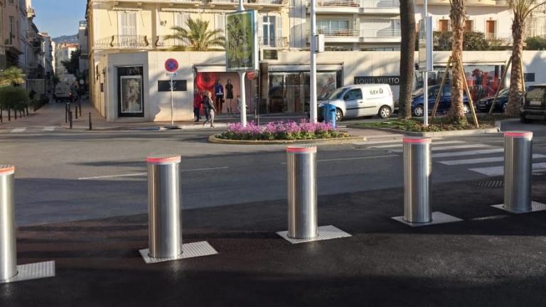 The Croisette-Serbes is one of Cannes’ most well-known thoroughfares. It is a high traffic road that leads to the Croisette and seaside attractions and needed a solution to secure the safety of pedestrians, road users and shopkeepers during event season. The road’s two access points have been secured by 6 ONE 40 EVO retractable bollards able to withstand the impact of a 7.5-ton truck traveling at 64 km/h. The bollards are controlled by two City 6 EVO towers equipped with an interphone system with a direct link to the local police department. The installation of 4 G6 EVO fixed bollards provide a further level of security for these access points.