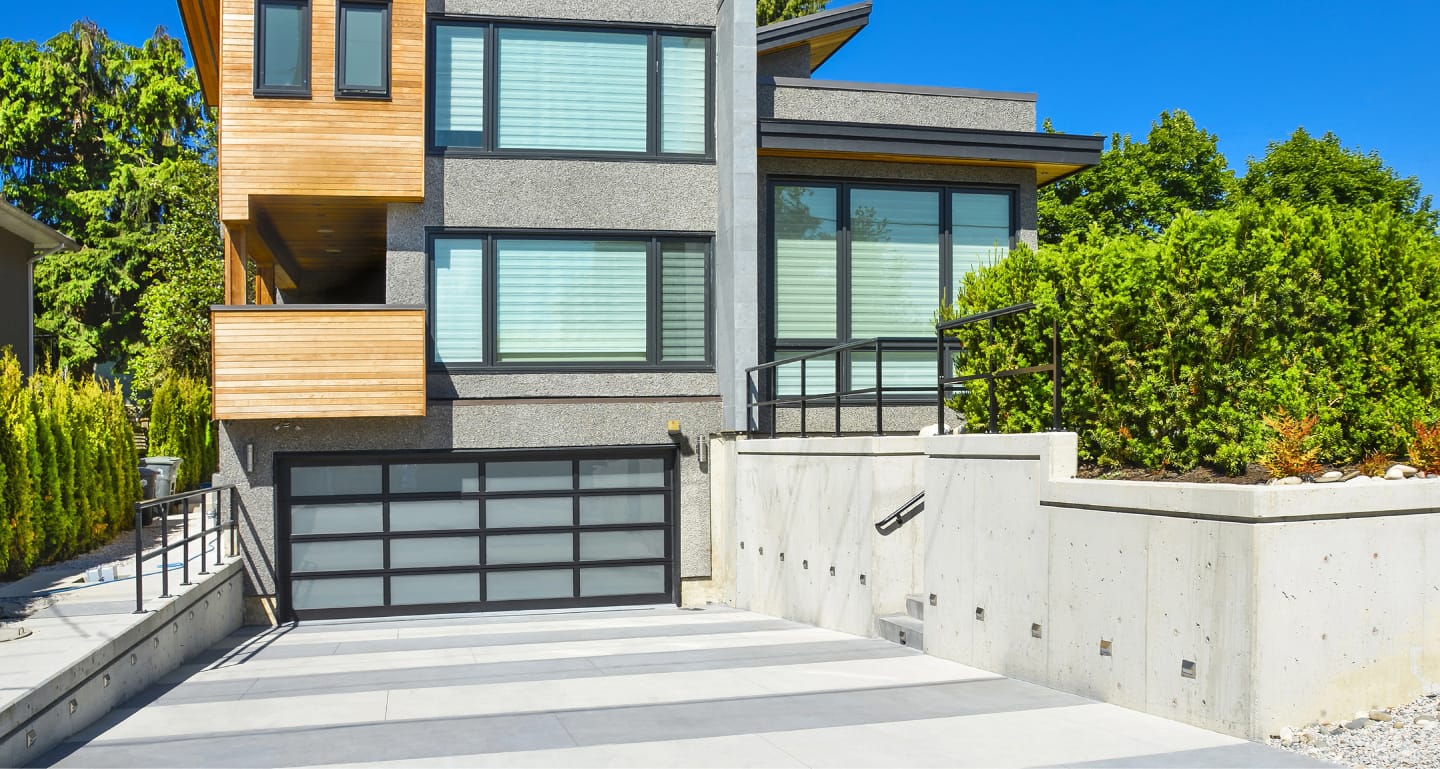An elegant door for pedestrians to pass through, integrated into a GO Italia residential sectional door, which makes entering and exiting easier for people, wheelchairs, prams and bikes thanks to its rounded edges.
