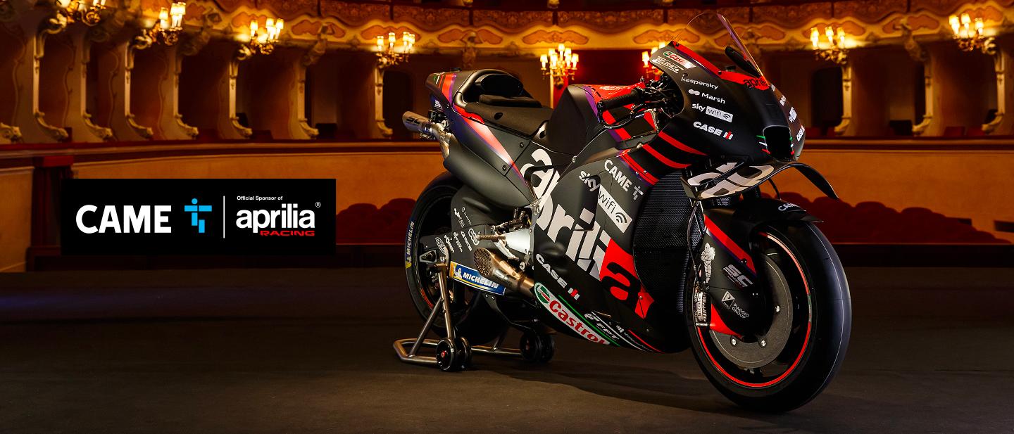CAME per il secondo anno consecutivo sarà “Aprilia Racing Official Sponsor” e tornerà in sella alle moto del costruttore italiano – che quest’anno guadagna lo status di Factory Team – per il mondiale MotoGP 2022 che partirà domenica 6 marzo dal Circuito di Losail in Qatar.
