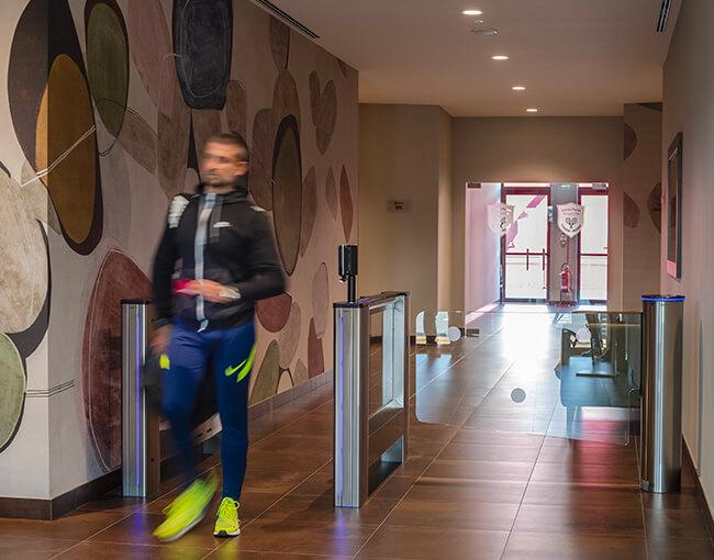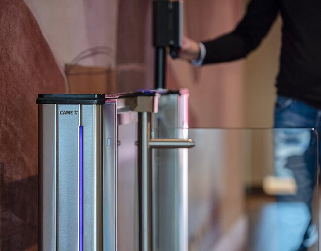 CAME, prendendo in considerazione oltre alle necessità dei gestori anche quelle dei visitatori, dei soci e dei fornitori, ha creato un progetto integrato che vede coniugate alcune delle sue soluzioni più funzionali e top di gamma che uniscono tecnologia e design. Per l’accesso principale alle aree interne dedicate ai campi da tennis, alla palestra e al centro benessere CAME ha adottato tre varchi veloci PG03 in acciaio inox a 2 ante battente che garantiscono un ingresso veloce, sicuro e controllato per il massimo comfort degli ospiti e la praticità degli operatori. Inoltre, è stato installato anche un altro varco pedonale veloce GLA1 ad anta battente in grado di attivare la funzione di evacuazione rapida in caso di emergenza e per il transito provvisorio dei carrelli di servizio. Grazie alle loro dimensioni, entrambi i modelli sono pensati anche per il passaggio degli utenti con disabilità. Per rimanere in linea con lo stile d’arredo del centro le ante e i top di finitura di tutti i varchi sono stati elegantemente rifiniti con vetro temperato di colore nero, donando trasparenza e luminosità.