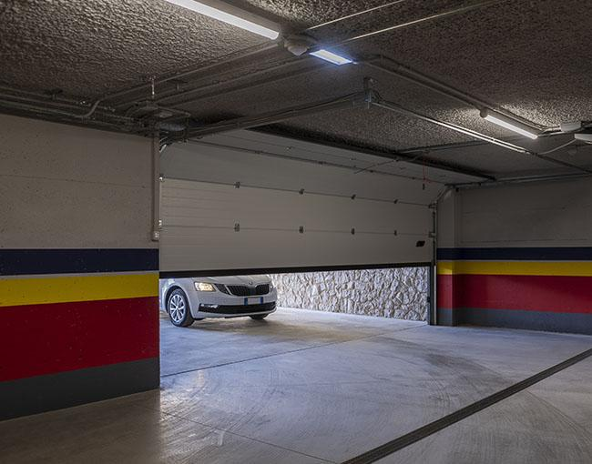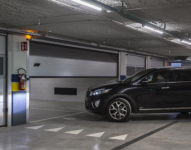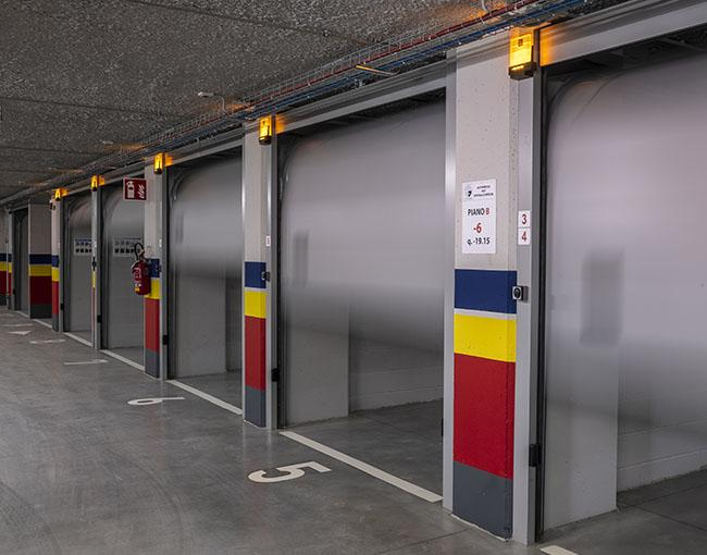 Il parcheggio ospita ben 125 posti auto tra box e salvaposto, distribuiti su 7 livelli interrati a cui si ha accesso da due rampe e da un ascensore interno. Per i posti auto più esclusivi, CAME ha installato 65 porte garage sezionali dotate di kit automazione, sezione areata e un sistema di sblocco per l’eventuale apertura manuale in caso di emergenza. CAME ha anche fornito i salvaparcheggio automatici per 62 posti auto liberi.