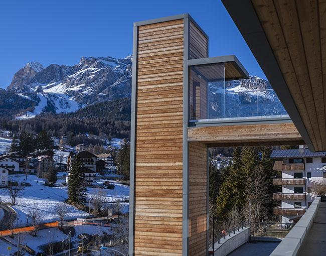 Il parcheggio, nato dalla visione imprenditoriale della società F.A.I.T., progettato dallo studio Architetti Bernardi di Cortina d’Ampezzo e realizzato dall’impresa Fontana di Belluno, rientra in un più ampio progetto di riqualificazione architettonica e urbanistica che comprende anche alcuni spazi adibiti a locali tecnici per il Comune e l’attivazione di un suggestivo ascensore pubblico che porta sino a una terrazza panoramica. Qui, una moderna costruzione a vetri – da cui è possibile godere dell’incantevole vista delle Dolomiti – ospita una galleria d’arte. L’ascensore panoramico, inoltre, è ad uso di cittadini e turisti per raggiungere il centro di Cortina in modo semplice e veloce, evitando problemi di viabilità per tutti coloro che provengono da Lungo Boite.