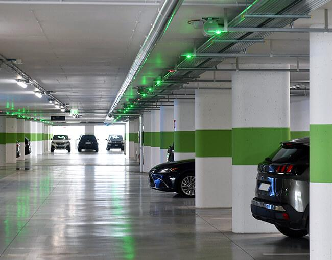 Il centro della soluzione di parcheggio è l’innovativo sistema PKE del brand CAME Parkare, che grazie a una rete di dispositivi automatici, garantisce una sempre migliore esperienza di utilizzo (user parking experience) rendendo più semplice e veloce il transito degli utenti. La scelta di installare il sistema PKE è stata effettuata al fine di agevolare l’utilizzo dei posti auto da parte dell’utenza ospedaliera, disincentivando l’accesso alle persone estranee alla struttura, e permettere al gestore di individuare con facilità le auto posteggiate al di fuori degli spazi consentiti: all’interno del parcheggio, in corrispondenza di ogni posto auto coperto, sono stati installati a soffitto 233 sensori ad ultrasuoni per il rilevamento dei veicoli. I sensori oltre a svolgere la funzione di rilevamento del corretto posizionamento, segnalano all’utenza lo stato aggiornato del posto auto attraverso una luce verde, se disponibile, o rossa, se occupato, facilitandone l’individuazione a distanza e minimizzando il verificarsi di code e ingorghi all’interno del parcheggio.