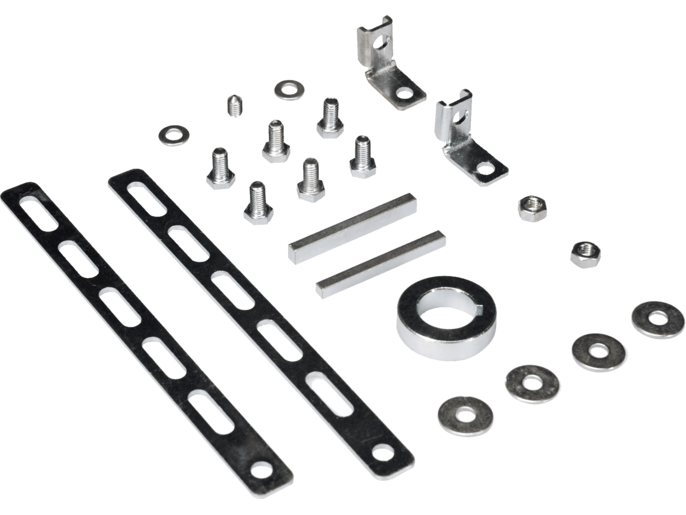 Paquete de n.º 2 bridas perforadas con árbol portamuelles Ø 25,4 mm (1”) (accesorio específico para la aplicación en portones con motorreductor de transmisión directa).