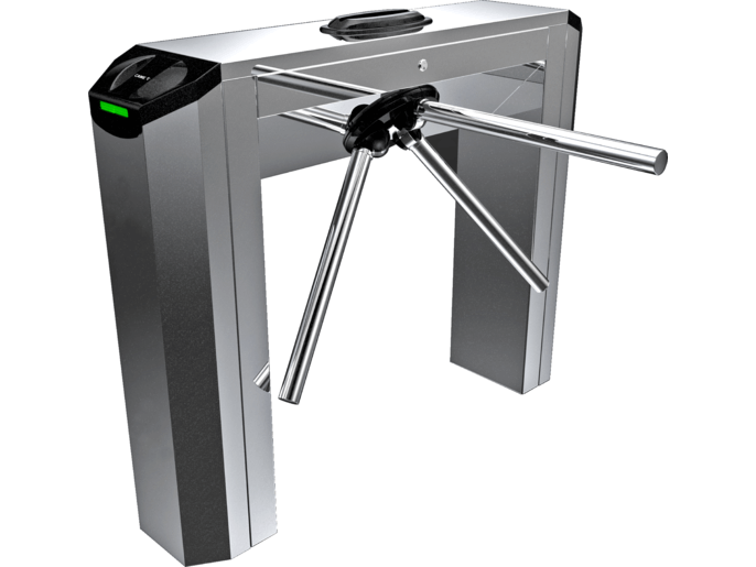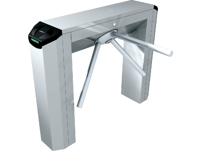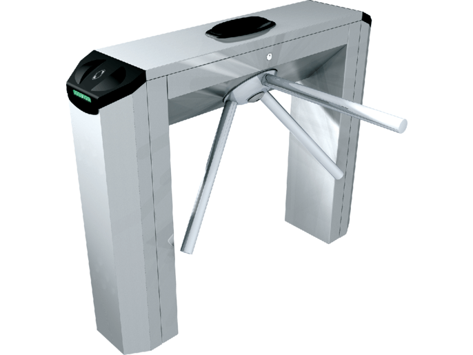 Elektromechaniczny kołowrót dwukierunkowy wykonany z satynowanej stali AISI 304, wyposażony w płytę elektroniczną, czujniki zbliżeniowe, strzałki LED wskazujące kierunek przejścia, semafory boczne i hamulec hydrauliczny. Automatyczny system odblokowujący w przypadku przerwania dostawy prądu.
