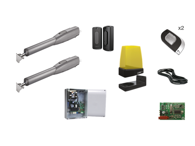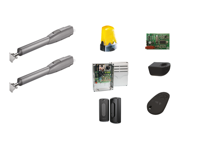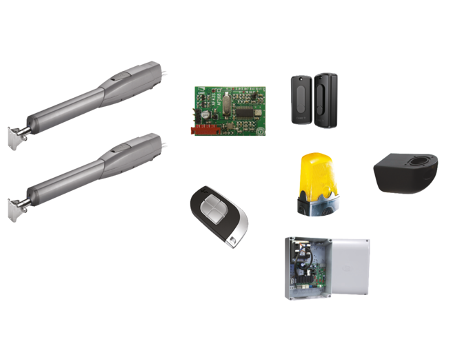 - Motoriduttore telescopico 230 V irreversibile per cancelli a battente con C Max. 200 mm con anta fino a 3 m e 400 kg di peso. Colore grigio RAL7024.