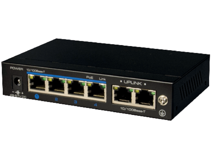 Switch 4 portas POE + 2 portas Uplink. Alimentador incluído.