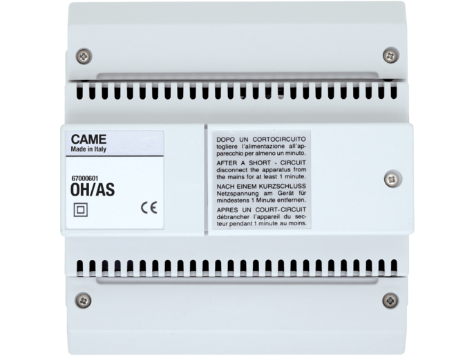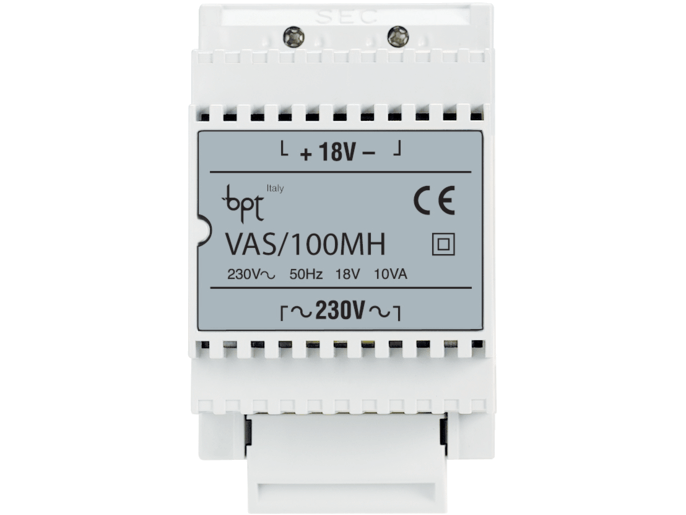 Tensão de alimentação 230V AC tensão de saída 20V. Ligado ao bus domótico, fornece a alimentação a todos os módulos. Preparado para a ligação a uma alimentação de urgência (24V DC).