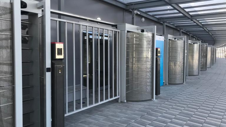 The outer-perimeter access-control system is composed of four-sector, Guardian series, full-height turnstiles whose sturdy structures and top-of-the-line materials can withstand both the intensive-use cycles and particularly harsh weather conditions. CAME turnstiles bring safety and reliability when managing and selecting entrances for major sporting events. They are equipped with motor-driven central rotor. The arms and grille are made of AISI 304 stainless steel and combine the very best of Italian aesthetics with the utmost capacity to withstand extremely cold climates and severe conditions.