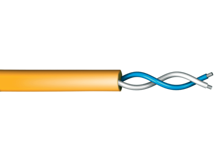 Confezione da 500 m di cavo a doppino twistato con sezione 1 mm², Classe CPR Eca.Cavo con guaina isolante esterna in PVC con diametro 7 mm, colore giallo RAL 1021. Twistatura conduttori 10 spire/m. Conduttori in rame stagnato colore bianco RAL 9001 e blu RAL 5015. Impedenza nominale 100 ohm (f=1 MHz), capacità 50 pF (a 20°C). Raggio minimo di curvatura cavo 80 mm. Conforme alle norme CEI 46-6 ultima edizione.
