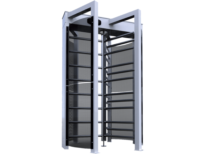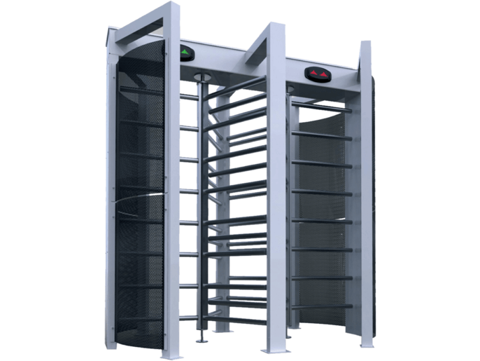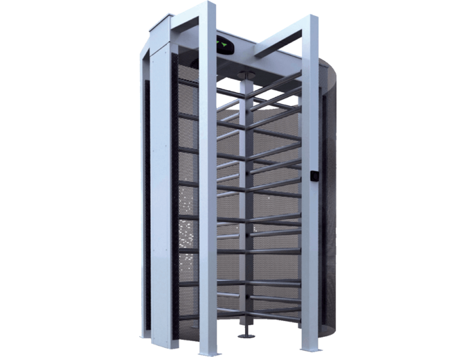 Bidirectional electromechanical single full-height turnstile with three 120° sectors - structure made of RAL 7035 coated galvanized steel, complete with control board and hydraulic brake, LED directional indicators, multifunction display and courtesy light.