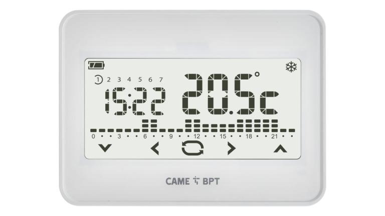 Combines professional features of CAME Bpt programmable thermostats with the simplicity of wireless installations. All functions can be activated via the large touch screen display. The simple and intuitive graphic display enables immediate programming.